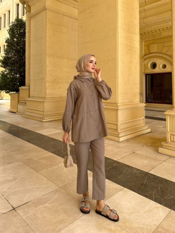 KETEN VİZON RENGİ ALT ÜST TESETTÜR TAKIM